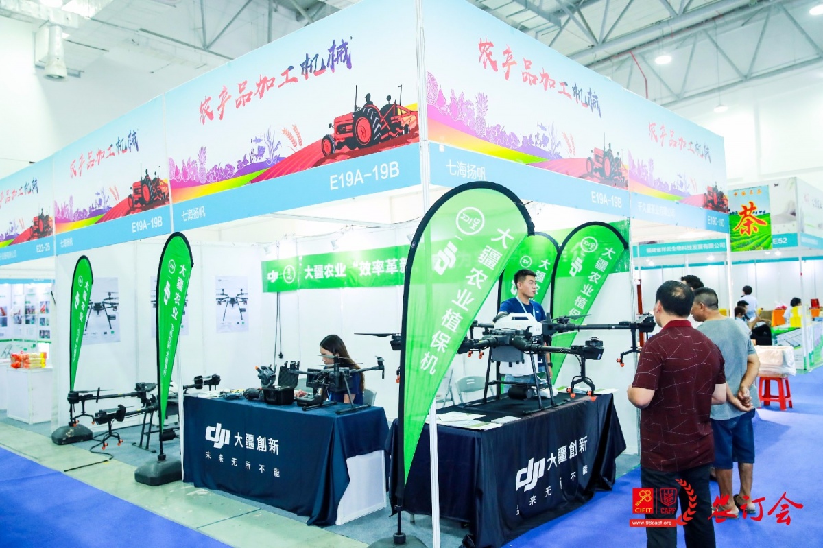 农产品加工机械展区主要是为农业提供各种设备、种植养殖技术,包括大疆无人机、热泵烘干设备以及制冷设备。
