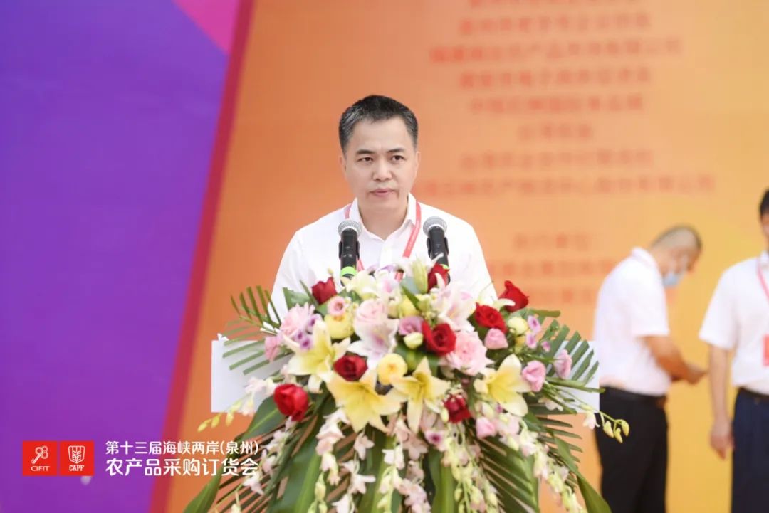中共南安市委书记林荣忠在开馆式上致辞,他表示海峡两岸(泉州)农产品采购订货会已逐步发展成为展示两岸农业新技术、新产品、新成果,促进两岸农业大交流、大合作、大发展的盛会,并希望借助“农订会”这个平台,让各界朋友在更广范围、更深领域寻求发展机遇,在更高层次、更大程度实现互利共赢。