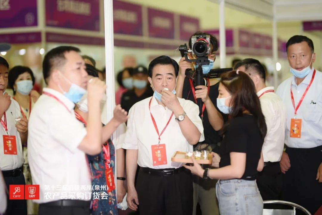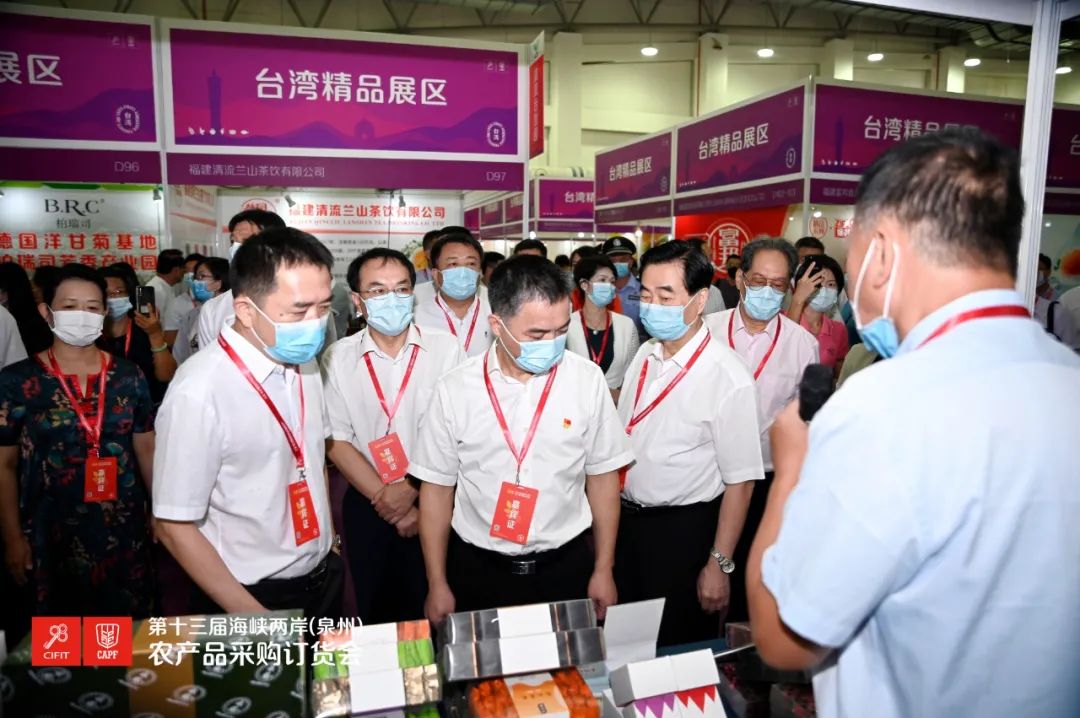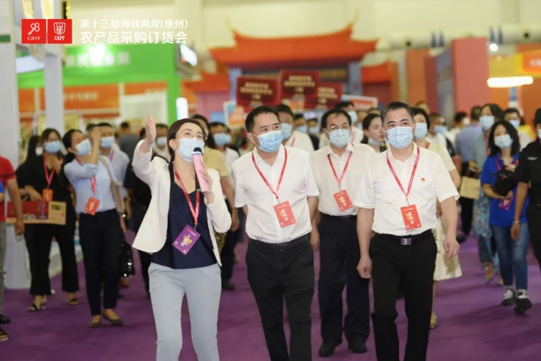 领导嘉宾走访台湾精品展区、泉州特色农产品展区、老字号展区等多个展区,对六大国家级台湾农民创业园、中国石狮国际食品城、泉州市老字号协会等企业展团表示亲切慰问,为两岸农业合作、经贸交流成果点赞。