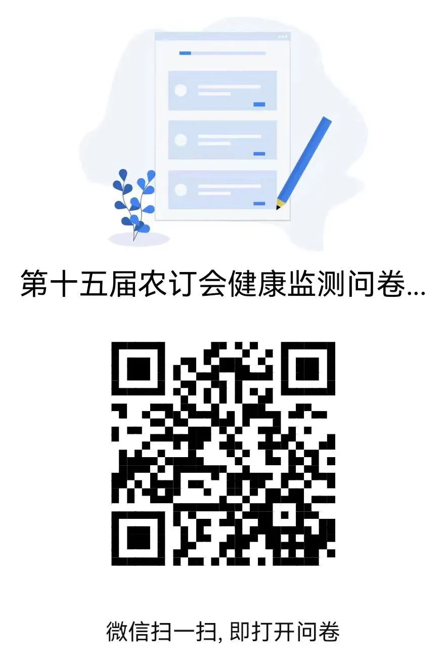 涉疫地区人员参会管理 7天内有中高风险区旅居史的人员严格不得参加活动,中、高风险区所在县(市、区、旗,直辖市为所在街道)的低风险区人员,活动报到前在南完成核酸“三天两检”、两次核酸检测间隔大于 24 小时且检测结果为阴性后可正常参加。有本土病例但未划定中高风险地区的县(市、区、旗)或直辖市的街道人员(以市疾控评估后发布的清单为准),在南完成核酸检测三天两检、两次核酸检测间隔大于24小时且检测结果为阴性方可参加。部分特殊地区来南人员另有管控要求的,届时以市疫情防控指挥部的通告为准。特殊确需参会嘉宾由邀请方说明原因及健康管理措施后报组委会,由组委会统一报市指挥部进行研判。 疫苗接种 建议境内参展参会人员在参会前完成新冠病毒疫苗全程接种。同时,出发前加强个人健康监测,来南旅途中全程佩戴口罩,加强个人防护。 核酸检测要求 01 所有省外入泉人员,需持前48小时内核酸阴性证明入泉,抵泉后在本市完成“三天两检”,持在泉48小时核酸检测报告入场。 02 七日内有福建省内旅居史的观众进入展会现场须持在泉48小时核酸检测报告或现场核酸标识入场。 参会流程 01 抵南前注册“福建健康码” 所有参展人员在开幕前须注册“福建健康码”。可通过微信小程序搜索“福建健康码”、扫描以下福建健康码小程序码或下载并注册“闽政通”APP,获取健康码。 ▲福建健康码 ▲闽政通APP 02 所有人员必须进行预登记 所有人员必须进行预登记,请扫描下方二维码登录“合诚云展”小程序,填写相关预登记信息。 03 提前填写“健康监测问卷” 参展商、工作人员、服务保障人员需提前填写“第十五届农订会健康监测问卷”。 扫描以下小程序码注册“第十五届农订会健康监测问卷”。请务必将个人健康信息,包括:进馆前48小时核酸检测阴性证明(或电子核酸检测凭证),健康码、通信大数据行程卡,提交至组委会“第十五届农订会健康监测问卷”管理系统中。 04 进馆流程 本次展会一律凭福建健康码、行程卡、48小时核酸检测报告、预登记码入场,全体人员按规范佩戴口罩,自觉按1米间距有序排队,按以下步骤从成功会展中心的入口进馆:1. 健康码、行程码人工核验→2.电子哨兵端口核验健康码、核酸检测报告、疫苗接种情况→3. 观众预登记→4. 安检→5. 人像识别闸机,扫描预登记码→6. 入场。 其他事项 01 核酸检测点 临近大会开幕,组委会将在成功会展中心、接待酒店设置核酸检测点,有需要的人员可凭身份证免费就近检测。 02 健康码、行程码异常 通过人工、电子哨兵系统对所有参会人员刷脸核验健康码。健康码、行程卡无异常人员均可通行,异常人员将由组委会工作人员现场甄别后按规范处置。 03 观展参会 观展期间请全程规范佩戴医用口罩;按现场工作人员引导,有序间隔就座或参观(参展期间发现体温异常者组委会工作人员应及时报告并按规程对其隔离管控)。 END