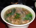 | 官桥牛肉羹:它是由精牛肉经木棒碾碎后,反复敲打,把拌好的牛肉分散放入锅中汆,约10分钟后装入碗中,撒上葱末、姜丝即成。 |
