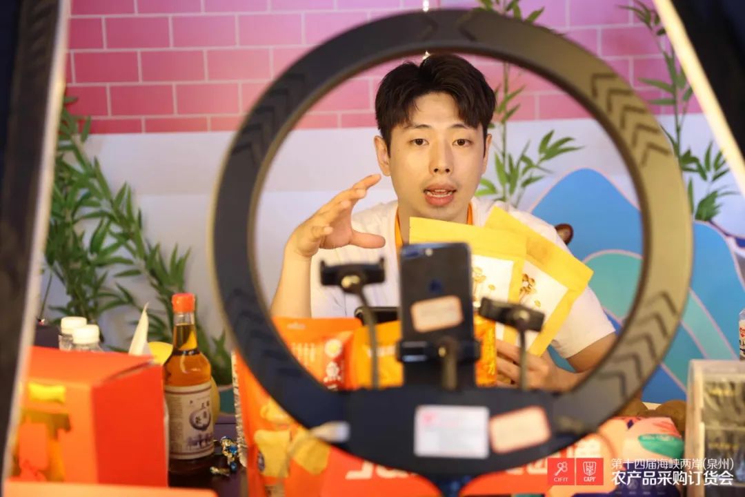 展期实现线上+线下双线联合,多平台直播现场盛况。携手知名电商平台拼多多打造海峡两岸农产品综合营销推广活动——海峡两岸农产品云购直播节,通过直播与展销平台形式推广全国名优特产品,助力两岸企业打赢抗击疫情的攻坚战,实现闽台农业产业经济多元化发展。云购直播节期间,共计直播15场,为超过50家企业的上百件产品带货,成交订单数3.7万笔,销售额超90万元。现场还吸引了“直播南安”“海峡导报”等平台开展直播逛展活动,同步在抖音、朋友圈广告等渠道曝光,抖音话题总播放量超438.9万次,线上直播总曝光量突破186.18万人次。