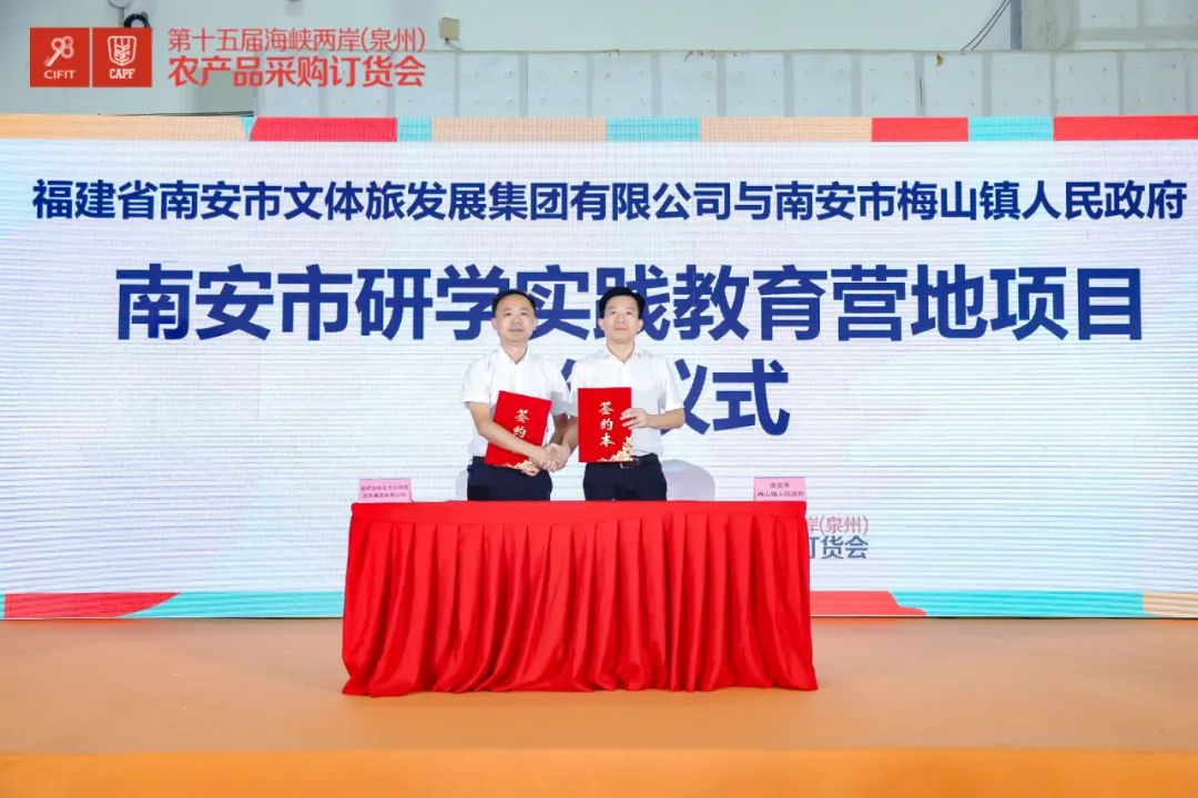 会上,还举行了集中签约仪式,现场共签约项目3个,总投资超4.5亿元,项目涉及信息采集系统、城市田园综合体、研学教育基地等多个产业领域。其中,南安泉新四季家庭农场与中国移动福建公司南安分公司诗山分局进行《数字果园》项目签约;福建省南安市文体旅发展集团有限公司与溪美街道办事处综合便民服务中心进行《南安市莲塘城市田园综合体》项目签约;福建省南安市文体旅发展集团有限公司与南安市梅山镇人民政府进行《南安市研学实践教育营地》项目签约。